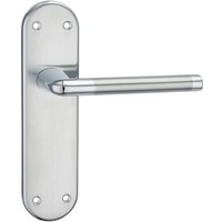 Fortessa Foko Door Handle On Lock Plate 120 x 46.7 x 184mm (L x W x H) Polished Chrome / Satin Chrome has matching lever on backplate. The handle is fixed on the lock plate with straight design on a curvy backplate. Supplied with matching screws making the installations quick as well as easy. This is manufactured from zinc alloy making the product strong with dual finish. The angle of rotation of the lever is 50 degrees with a rotational torque of 20Nm and axial load of 300N. Supplied & sold in pairs complete with fixings. Corrosion resistant. Durable owing to its make.