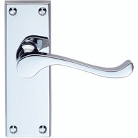 Carlisle Brass Victorian Lever Latch Handle Contract Set 120 x 40mm (H x W) Polished Chrome is a plain rectangular lever on latch backplate set. The handle has unique lines and the straight lever comes with an inward curve at the end. Suitable for all types of PVC, wood and composite doors. Supplied & sold in pairs complete with fixings. Finish prevents tarnishing. Corrosion resistant.