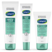 Developed for blemish-prone skin types, the Cetaphil Gentle Clear Blemish Control Kit contains and three-step routine designed to cleanse, treat and nourish skin prone to breakouts. Each formula is infused with salicylic acid, a BHA exfoliant that helps to visibly clear blocked pores, refine the look of texture and soothe the look of blemishes. Vegan. Set Contents: Cetaphil Gentle Clear Clarifying Blemish Cleanser 124ml A face wash designed for sensitive skin, formulated to minimise the appearance and frequency of blemishes. Infused with 2% salicylic acid, the formula works to visibly decongest and reduce the size of pores, while aloe vera and white tea deliver a soothing effect and minimise a stripped feeling. Cetaphil Gentle Clear Triple-Action Blemish Salicylic Acid Serum 30ml Clinically developed to improve and soothe the look of breakouts after and during, the gel-textured serum features a blend of PHA, BHA and succinic acid to gently exfoliate the skin. Niacinamide enhances the formula to improve the appearance of post-breakout marks, lending a brightened effect. Cetaphil Gentle Clear Mattifying Blemish Face Moisturiser 89ml The lightweight moisturiser works to reduce the appearance of pores and textural irregularities. Salicylic acid encourages a smoother-feeling base while safflower oil leaves the skin feeling soft and supple. Developed for oily, breakout-prone skin, the face cream creates a matte finish.