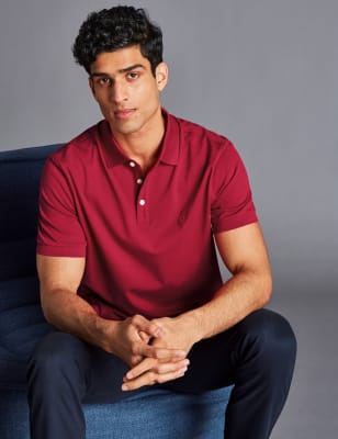 For a polo shirt that's as classic as it is comfy, reach for this breathable cotton-rich style by Charles Tyrwhitt. It's cut to a regular fit with a hint of stretch for easy movement. Traditional details include the collared neckline, three-button placket and ribbed cuffs on the short sleeves. An embroidered logo on the chest adds a signature branded touch, while the pique weave ensures long-lasting quality.