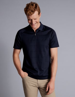 Elevate your smart-casual collection with this Charles Tyrwhitt polo shirt, crafted from pure cotton jersey with a lustrous sheen. It's designed in a regular fit with short sleeves. The sophisticated collared neckline is completed with a half-zip fastening, giving it a modern touch.