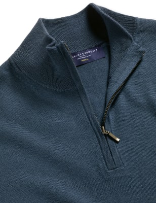 Charles Tyrwhitt Men’s Pure Merino Wool Rib Shawl Collar Cardigan – Dark Green, Dark Green,Navy