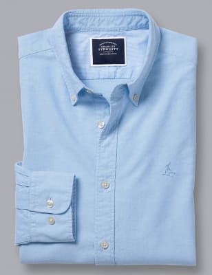Add this textured pure cotton Oxford shirt from Charles Tyrwhitt to your formalwear collection. It's cut to a contemporary slim fit, with a button-down collar and long sleeves featuring rounded single cuffs. The piece is complete with an easy-care non-iron finish and a neat front button fastening.