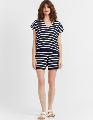 Chinti & Parker Women’s Wool Rich Striped V-Neck Sweatshirt – Navy Mix, Navy Mix