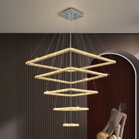 Chrome large long rings led pendant light kitchen decorative hanging lamp hotel living room modern luxury k9 crystal chandelier