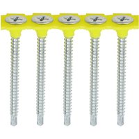 Box of 1000 TIMCO Collated Drywall Fine Thread Bugle Head Silver Screws - 3.5 x 25 Used to secure plasterboard to drywall and ceiling track systems with a max. of 0.6mm thickness. The collated strips are specifically designed to be compatible with all leading power tool brands. Collated Drywall Fine Zinc The collated strips are specifically designed to be compatible with all leading power tool brands