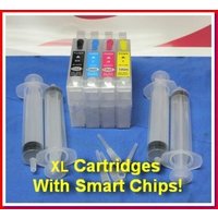 Compatible Refillable Cartridges For Epson #200 Cartridges For Printer Models WF-2520, WF-2530, WF-2540 Epson WorkForce WF-2520, WF-2530, WF-2540 1 - Set of XL capacity Compatible refillable cartridges with COC Smart Chips 4 - Syringes with safet...
