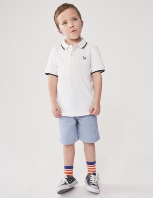 Add some smart-casual options to their wardrobe with this pack of two Crew Clothing polo shirts. They're made from comfy pure cotton pique in an easy regular fit, and fasten with two buttons at the collared neckline for a timeless look. These short-sleeved tops feature contrasting plain designs, and are finished with premium embroidered branding on the chest.