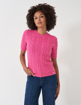 Crew Clothing Women's Cotton Rich Cable Knit V-Neck Jumper - 12 - Soft White, Soft White,Dusky Rose