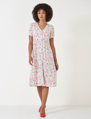 Crew Clothing Women's Floral V-Neck Midi Kaftan - 10 - White Mix, White Mix