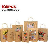 Custom Logo Printed Brown Kraft Paper Shopping Bag Food Delivery Takeaway Paper Bag Gift Bag with Handle