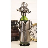Cute Beagle Dog With Bone Style Collar Hand Made Metal Wine Bottle Holder Caddy PRODUCT SPECIFICATIONS MATERIAL: Recycled metal FINISH: Metal PAINTWORK: Hand Sculpted DIMENSION: (Approximate) HEIGHT 12.25" (Wine Bottle Installed) LEN...