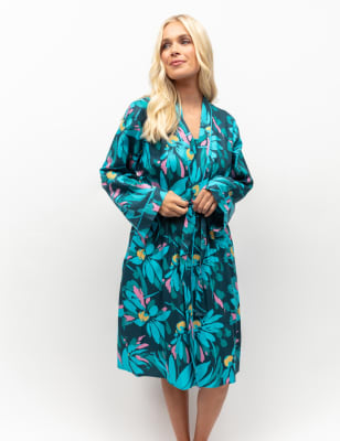 Cotton-modal fabric gives this floral dressing gown by Cyberjammies a wonderfully soft and breathable quality. It offers a comfy regular fit with a traditional tie fastening at the waist. The long hemline drapes down to the calves and the design is complete with wide sleeves for an elegant feel.
