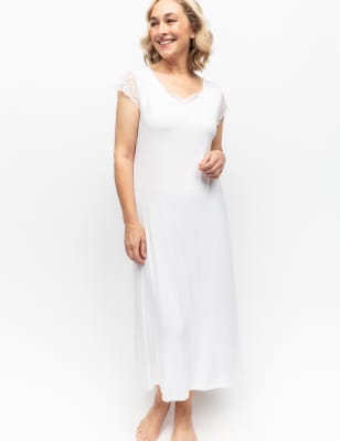 Cyberjammies Women’s Cotton Modal Palm Print Nightdress – 24 – White Mix, White Mix