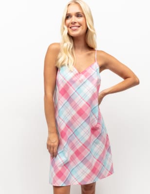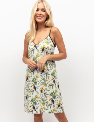 Made from a lightweight cotton-modal blend, the Mel chemise by Cyberjammies will keep you cool and comfortable as you sleep. It's designed in a regular style, with a knee-length hem and thin adjustable straps for your perfect fit. A flattering v-neckline with piping and a playful watermelon print create a sleek finish.