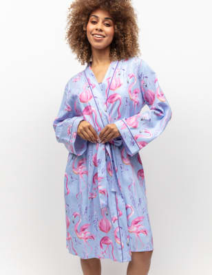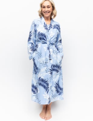 This Cyberjammies dressing gown is made from modal-rich jersey for a soft, luxurious feel. It's cut in a comfy regular fit to a longline silhouette, with practical pockets at the side seams. A self-tie belt keeps the gown fastened, while an intricate scalloped lace trim adds a dainty finish to the front.