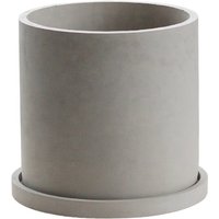Cylinder cement/concrete flower pot dark grey color with saucer for green plant home decor