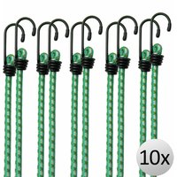 These high-quality bungee straps are versatile and indispensable in everyday life. They are used for covering with tarpaulins, at the boat trip or as bicycle accessory. They are also ideal for outdoor activities, such as camping or when securing garden furniture at high wind or for hanging advertising banners. The set contains 4 different lengths so you always have the right length for the respective situation. The bungee straps consist of durable and weather-resistant material. The durable metal hooks are provided with a rubber protection to prevent injuries and damages. Product advantages: 8 pieces set 4 different lengths Versatile Durable and weather-resistant Durable metal hooks Rubber protection at the hooks Set contains: 2x 100cm (39.4 in) 2x 80cm (31.5 in) 2x 60cm (23.6 in) 2x 40cm (15.7 in) Technical data: Rope diameter: 8mm Hook: 3.2mm Colours: Blue, yellow, green, red Max. load: Fzul 70N (7kg) Type 1: Length (without load) 100cm / 39.4 in Length at max. load 195cm / 76.8 in