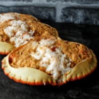 These lovelies are caught daily (weather permitting) and after cooking, they split the shell to reveal two beautifully succulent halves. Lobsters are then cleaned and all the unnecessary bits removed, leaving room for their dedicated staff to stuff their special ‘mixed pearl’ filling. The Claw Meat is then removed from the shell and served alongside. fresh white crab meat and plump peeled shrimps, topped off with two cooked crevettes to give you 4 different seafoods to enjoy.