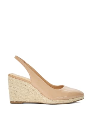 Bring a touch of sparkle to your summer outfits with these Dune London wedges, featuring embellished detailing on the straps. This slip-on style has a timeless low cork heel and an elegant open-toe design.