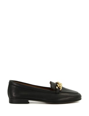 Add a classic finish to your work and weekend outfits with these leather loafers from Dune. Perfect for everyday wear, these effortless slip-ons are designed with a low block heel and an almond toe. A golden chain trim adds a traditional touch to these versatile shoes.