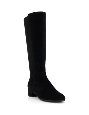 These suede knee-high boots from Dune London will make a timeless addition to your footwear selection. They're made in an easy pull-on style, in a statement slouchy silhouette. A mid-height stiletto heel and a pointed toe ensure an elegant profile.