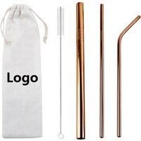 Eco-friendly Reusable Rainbow Colored Drinking Metal Straw Rose Gold Cocktail Stainless Steel Straws Sets