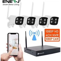 Smart Wireless Floodlight CameraSmart Wireless 1080P Battery Camera with Twin Floodlights, 10400mAh Batteries, ENERJSMART APPWireless battery Powered Camera with Outdoor Motion-Sensor Security Light10400 mah rechargeable batteries that can make the camera and floodlight last up to 4 months before recharging. Attach SHA5345 Solar Panel for the batteries to be recharged on their own with solar powerSmart features – when connected to ENERJSMART app or compatible Echo or Google Home Device, get mobile notifications, set schedules, turn the lights on and off, customize settings, and connect to other ENER-J devices – all from the ENERJSMART app.DIY InstallationPerfect for driveways and backyardsSpecification: Image Sensor: 1/3" Color CMOSDisplay Resolution: 1080P@15fps(1920*1080)Mini. Illumination: 0 Lux (with infrared LED on)Focal Length: 2.8mmViewing Angle: 120°LED: 6pcs 850nm LED IR distance up to 8mSpotlight: 400LMDay night mode: Auto change with IR-CUT removableImage Compression: H.264DNR: 3D Digital noise reductionWDR: Digital wide dynamic rangeAudio: Built-in Mic & SpeakerLED Indicator Light: Blue, RedMotion Detection: PIR human motion detection 8mWorking Temperature: -20°C ~ 60°C