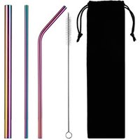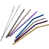 FDA Certified Stainless Steel 304 Colorful Bent Straight Straw With Cleaning Brush