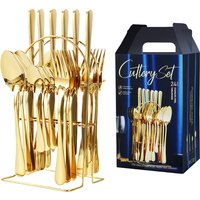 Factory wholesale Stainless Steel Knife Fork Spoon set 24pcs Gold Flatware Luxury Cutlery Set With Stand