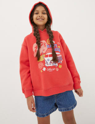 Fatface Girls Cotton Rich Beach Slogan Hoodie (3-13 Yrs) – 4-5 Y – Blue Mix, Blue Mix