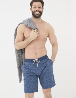 Bring some fun to the pool with these swim shorts from FatFace printed with tiny starfish. They're cut in a regular fit, with a lace-up drawstring fastening at the elasticated waistband for an extra-secure feel. This style is lined for comfort, and features pockets to the side and back for stashing essentials.