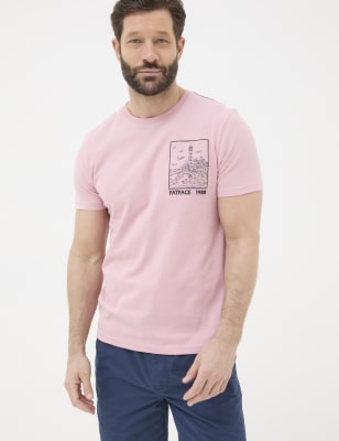 Fatface Men's Pure Cotton Lighthouse Embroidered T-Shirt - XSREG - Pink Mix, Pink Mix