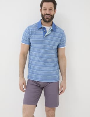 Fatface Men’s Pure Cotton Piqué Striped T-Shirt – SREG – Blue Mix, Blue Mix