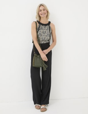 This cotton-rich cami top from FatFace makes a pretty and versatile addition to your casual wardrobe. It's made in a regular fit, with the slim adjustable straps forming a v-neckline and a racer-back silhouette at the back. Lace insert trims add a timelessly feminine touch.