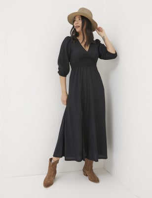 Fatface Women's Floral V-Neck Midi Waisted Dress - 8SHT - Black Mix, Black Mix