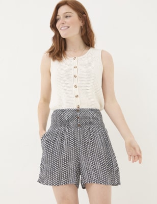 Fatface Women's Geometric Shorts - 8 - Black Mix, Black Mix Best Price: £35.00 from Marks and Spencer Buy for best price Description With their geometric print, these FatFace shorts will bring a bold look to your off-duty outfits. They're cut with an elasticated waistband and a drawstring tie for a flattering silhouette. The style is complete with two practical side pockets. Review This Product Related Products Fatface Women's Geometric Elasticated Waist Shirred Shorts - 8 - Black Mix, Black Mix Best Price: £35.00 Compare prices Fatface Women's Geometric V-Neck Midi Waisted Dress - 6SHT - Black Mix, Black Mix Best Price: £69.00 Compare prices Fatface Women's Pure Cotton Geometric Midi Waisted Dress - 10REG - Black Mix, Black Mix Best Price: £49.50 Compare prices