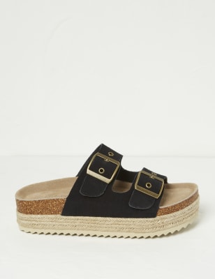 Fatface Women's Leather Buckle Crossover Footbed Sliders - 3 - Black, Black