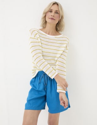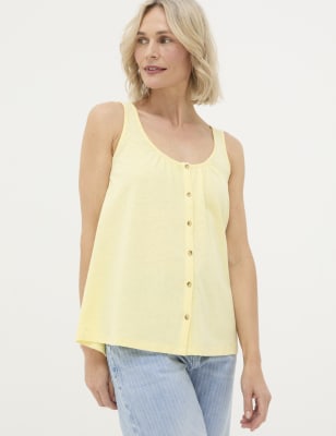 A blend of breathable cotton and cool linen makes this FatFace vest a comfortable choice for sunny days. It's cut in a regular fit, with a flattering scoop neckline. The button fastenings are made from natural horn for a premium finish. A handy chest pocket adds a practical touch.