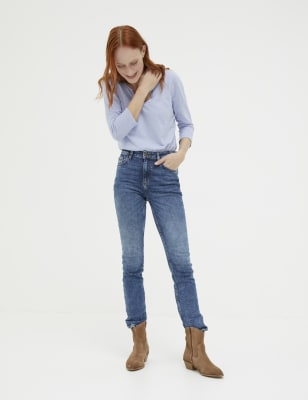Tap into a laid-back mood with these cotton-rich jeans from FatFace. They're cut in a svelte slim fit with a mid-rise waist for an ultra-flattering look. Fading and whiskering on the front give them modern appeal, while a button and zip fastening and five-pocket styling add classic design touches.