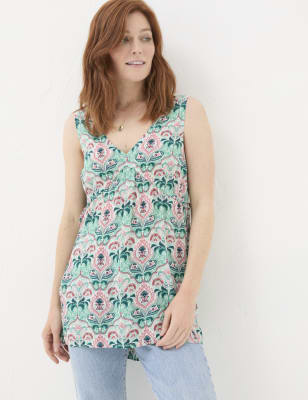 Fatface Women's Mirrored Paisley Top with Linen - 6 - Teal Mix, Teal Mix