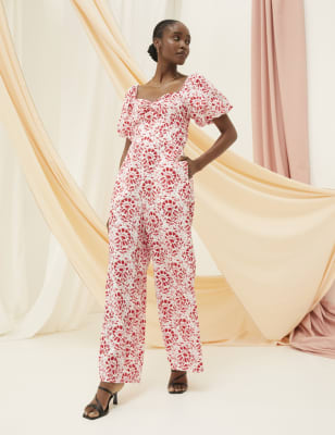 This pure cotton knee-length dress from FatFace is brimming with feminine details. It's cut to a regular fit, with a twist front at the v-neckline to emphasise the waisted silhouette. Short puffed sleeves bring a playful feel, and to the reverse there's a deep v-back with delicate ties. Broderie detailing and a charming floral print throughout complete the pretty piece.
