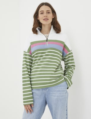 Bring extra flair to your off-duty wardrobe with this pure cotton hoodie from FatFace. It's cut in a comfy regular fit, from bold striped fabric for a playful look. The handy kangaroo pocket has directional stripes for added standout, while coordinating trims at the seams provide neat detail.
