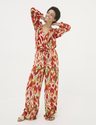 Breeze with ease into warmer days, thanks to these versatile palazzo trousers from FatFace. They're cut to a flattering wide-leg shape, with a mid-rise waist that's shirred for a comfortable and flexible fit. The lightweight fabric features a tactile crinkled texture, while two side pockets provide the perfect spot for stowing your small essentials.