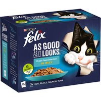 Felix wet cat food offers your cat a wide variety of delicious flavours. The Felix assortments with jelly are especially popular because they're so succulent. Now you can buy selected products from the Felix range in a great-value saver pack. The 48 x 100g Felix As Good As It Looks Saver Pack is available in the following varieties: Ocean Feast in Jelly: 12 x with Salmon 12 x with Plaice 12 x with Cod 12 x with Tuna Favourites Selection in Jelly: 12 x with Chicken 12 x with Tuna 12 x with Salmon 12 x with Beef Meaty Selection in Jelly: 12 x with Chicken 12 x with Lamb 12 x with Beef 12 x with Ham More information about the individual varieties can be found here: Felix Wet Cat Food Please be advised: the images of the products on our site are for illustrative purposes only and actual packaging may vary.