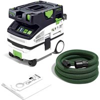 The Festool CLEANTEC CTMC MIDI 18v M Class Mobile Dust Extractor is ideal for dust-free cordless applications, perfect interaction with the Festool cordless tools for mobile sawing, sanding or drilling. The cordless dust extractor is approved for harmful dust particles in dust class M with limit values =0.1 mg/m³. It is suitable for the extraction of wood and mineral dust. Switching on the extractor via the remote control directly on the suction hose saves you a trip to the extractor. The flat storage area on top of the hose holder can be used as a seat or as a shelf for working materials. Thanks to T-LOC, the extractor can be coupled with Systainers. Features & Benefits • On-site extraction for cordless tools for minor or brief sanding, sawing and drilling work • Ideal for mobile use in service and installation work and for final cleaning • Suitable for both wet and dry extraction (special wet filter required – sold separately) • For hazardous wood dust and mineral dust from dust class M with limit values > 0.1 mg/m³ Specifications • Battery Voltage: 2 x 18v Lithium-Ion • Max Volume Flow: 3100 l/min • Max Vacuum: 19000 Pa • Filter Surface Area: 3369cm² • Container/Filter Bag Capacity: 15/12.5 l • Dimensions (L x W x H): 550 x 320 x 495mm • Dust Class: M Contents • Festool CLEANTEC CTMC MIDI 18v M Class Mobile Dust Extractor • No Battery • No Charger • No Case • CT-F I Extractor Remote Control • Main Filter • SC FIS-CT SELFCLEAN Filter Bag • Smooth Suction Hose