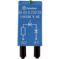 Finder 99.02 Series Indicator EMC Suppression Modules - Finder 99.02.0.230.98, This Finder 99.02 series EMC suppression and indicator module contains a varistor suppression circuit and a green LED indicator. The varistor circuit protects relay drivers from negative going voltage spikes. The LED shows when the associated relay's coil is energized. The module is designed to fit into a compatible socket together with the relay it protects. Compatible with Finder relays from the 40, 44, 46, 55, 56, 60, 62 series. Fits screw socket 90.02, 90.03, 92.03, 94.03, 94.04, 95.05, 96.02, 96.04. Finder 99.02.0.230.98 Coil Indication And EMC Suppression Module 110-240VAC/DC