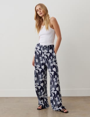 Finery London Women’s Floral Elasticated Waist Wide Leg Trousers – 10 – Navy Mix, Navy Mix