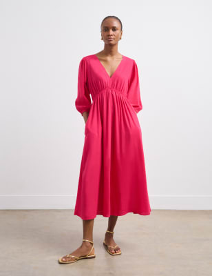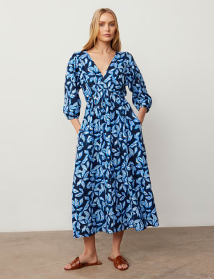 This tea dress from Finery London is made from a lightweight linen-blend fabric, making it perfect for warmer days. It's cut in an easy regular fit, with a flattering v-neckline and a versatile midaxi length. The three-quarter sleeves are gathered at the cuffs for a touch of volume.