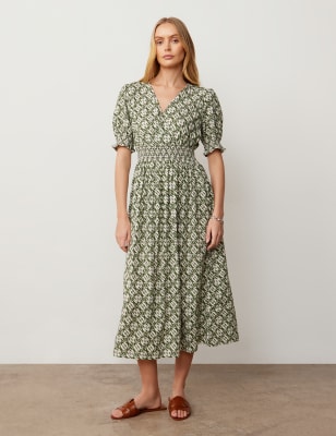Finery London Women's V-Neck Midaxi Waisted Dress - 8 - Green Mix, Green Mix